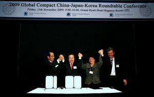 ( Seoul, 13 November 2009 ) – The first Global Compact China-Japan-Korea Roundtable Conference was held today to further advance corporate responsibility in the region. The Roundtable, jointly organized by the Global Compact Local Networks from each country, provides the opportunity for formal collaboration between the Northeast Asian Networks to intensify.