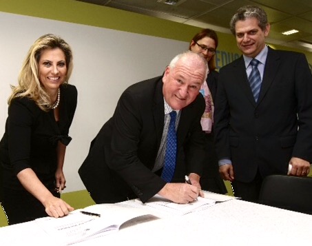 Signing the first publication of ´Cities for the Future´ (From Left: Vice-Governor Cida Borghetti, State Governor of Paraná; Victorian Minister for Skills Training and International Education, Hon. Steve Herbert; Ms Saskia Loer-Hansen, Director of International Relations, RMIT University; Secretario Silvio Barros, Minister for Planning, State Government of Paraná, Brazil)