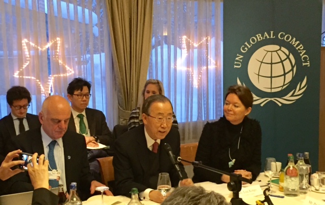 (Davos, 20 January 2016) – Global business leaders and UN heads met with UN Secretary-General Ban Ki-moon today during the World Economic Forum in Davos, Switzerland to explore opportunities for the United Nations to scale up public-private partnerships that will advance the Sustainable Development Goals (SDGs).