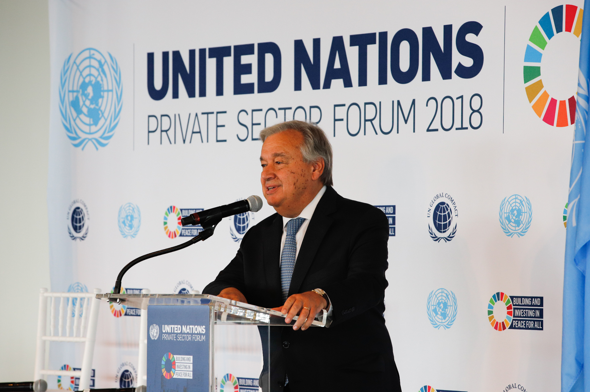 UN Secretary-General António Guterres addresses the 10th UN Private Sector Forum.