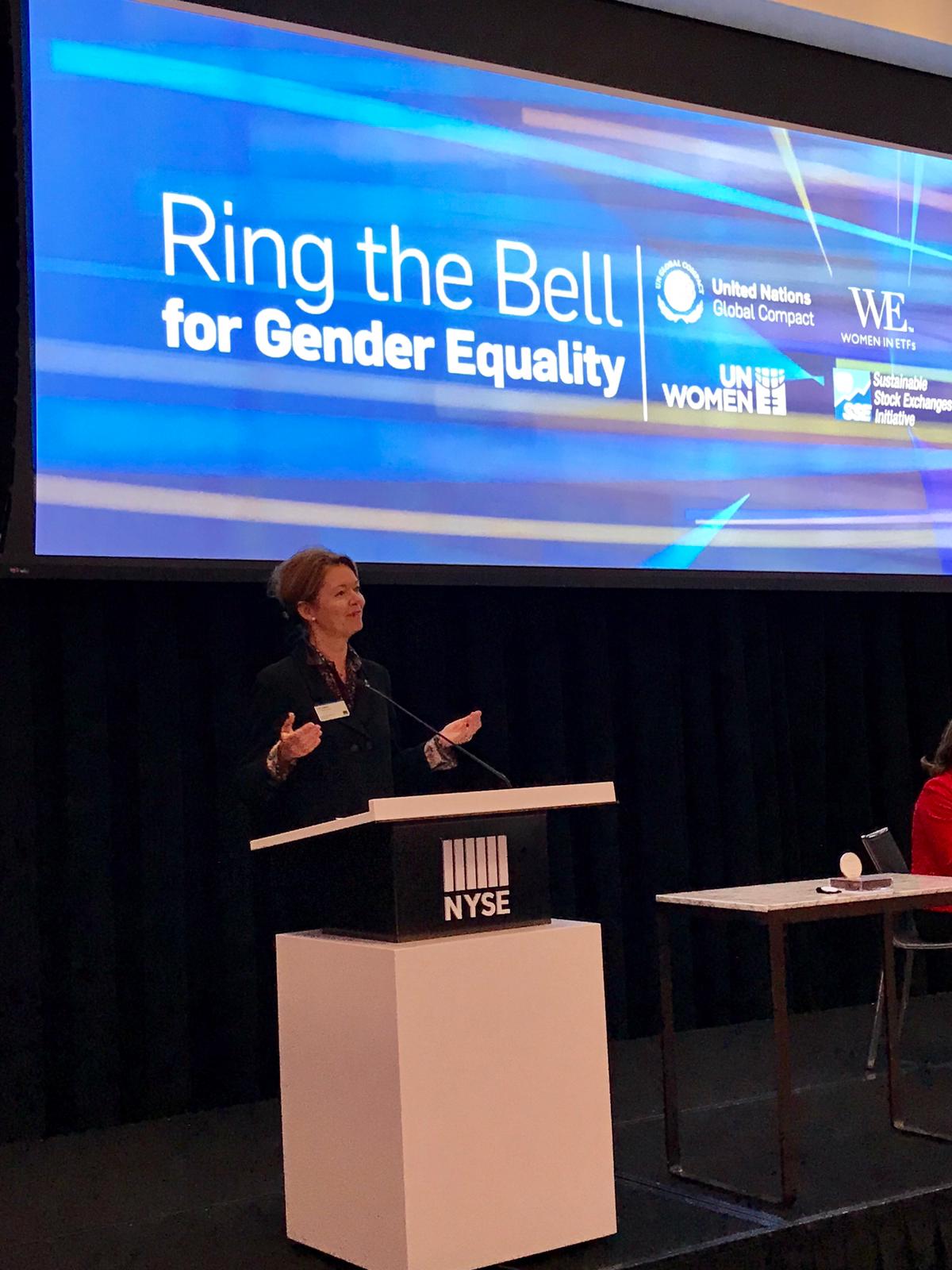 Currently in its fifth year, the Ring the Bell initiative is a collaboration between the UN Global Compact, UN Women, Sustainable Stock Exchanges Initiative, Women in ETFs, World Federation of Exchanges and the International Finance Corporation to raise awareness about the opportunities for the private sector to advance gender equality and sustainable development.