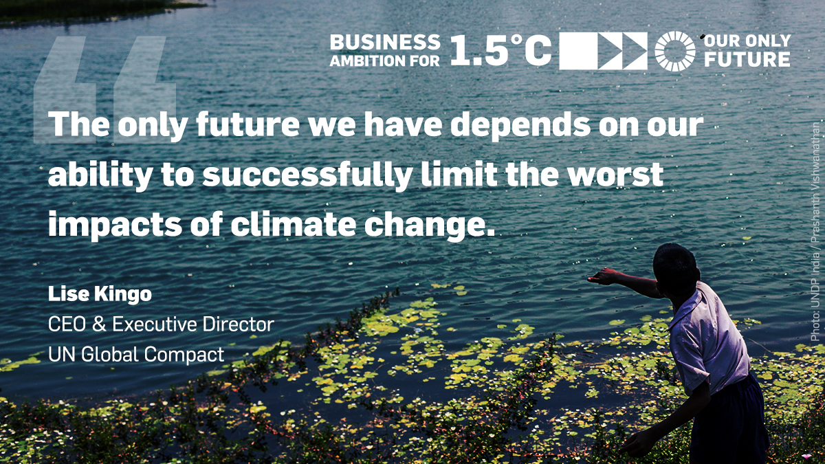 The bold individuals, countries and organizations that step up are well positioned to be the leaders of tomorrow. Our only future depends on all of us collectively scaling up our climate actions and ambitions — and business leaders have the opportunity to lead the way by joining the movement and taking action as part of the “Business Ambition for 1.5°C” campaign. We must show the young generation that we are serious about changing course for a better, more sustainable world.